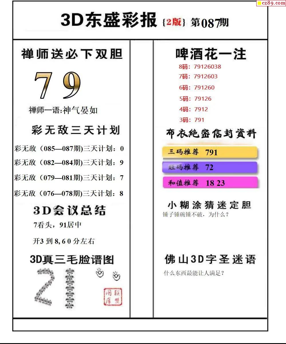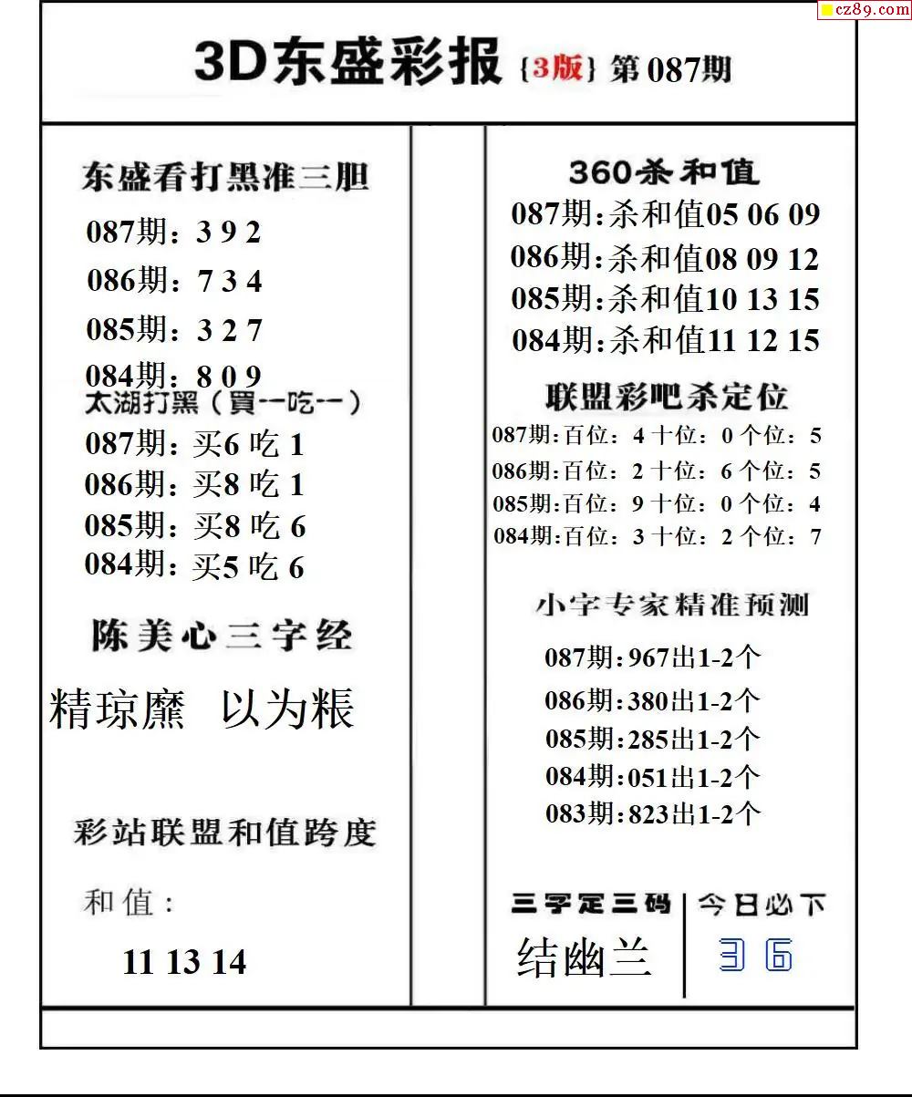 福彩3D2026087期东盛彩报+精品三毛会员版