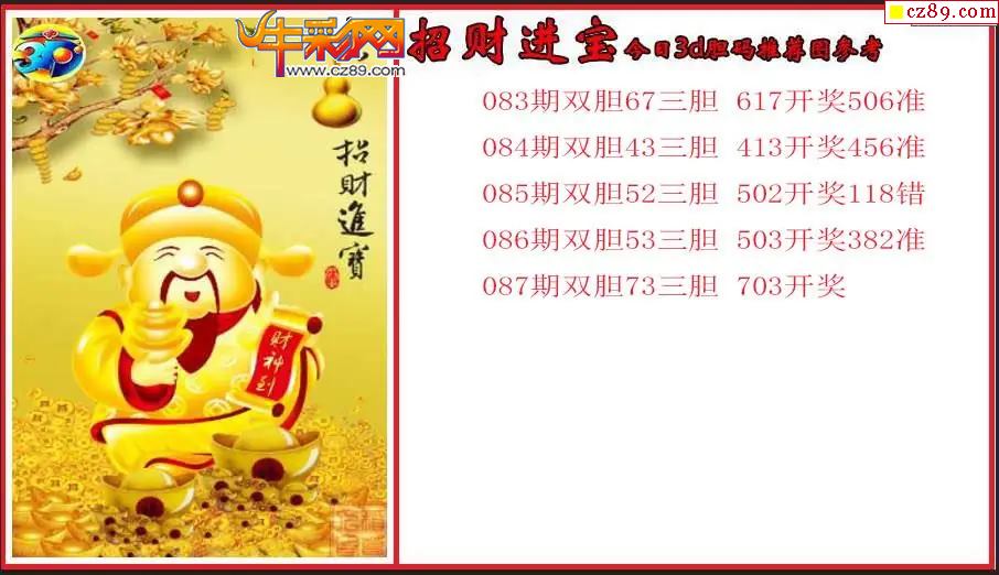 26年087期3d 招财进宝今日胆码推荐图参考
