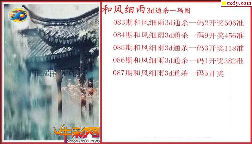26年087期3d 和风细雨通杀一码图