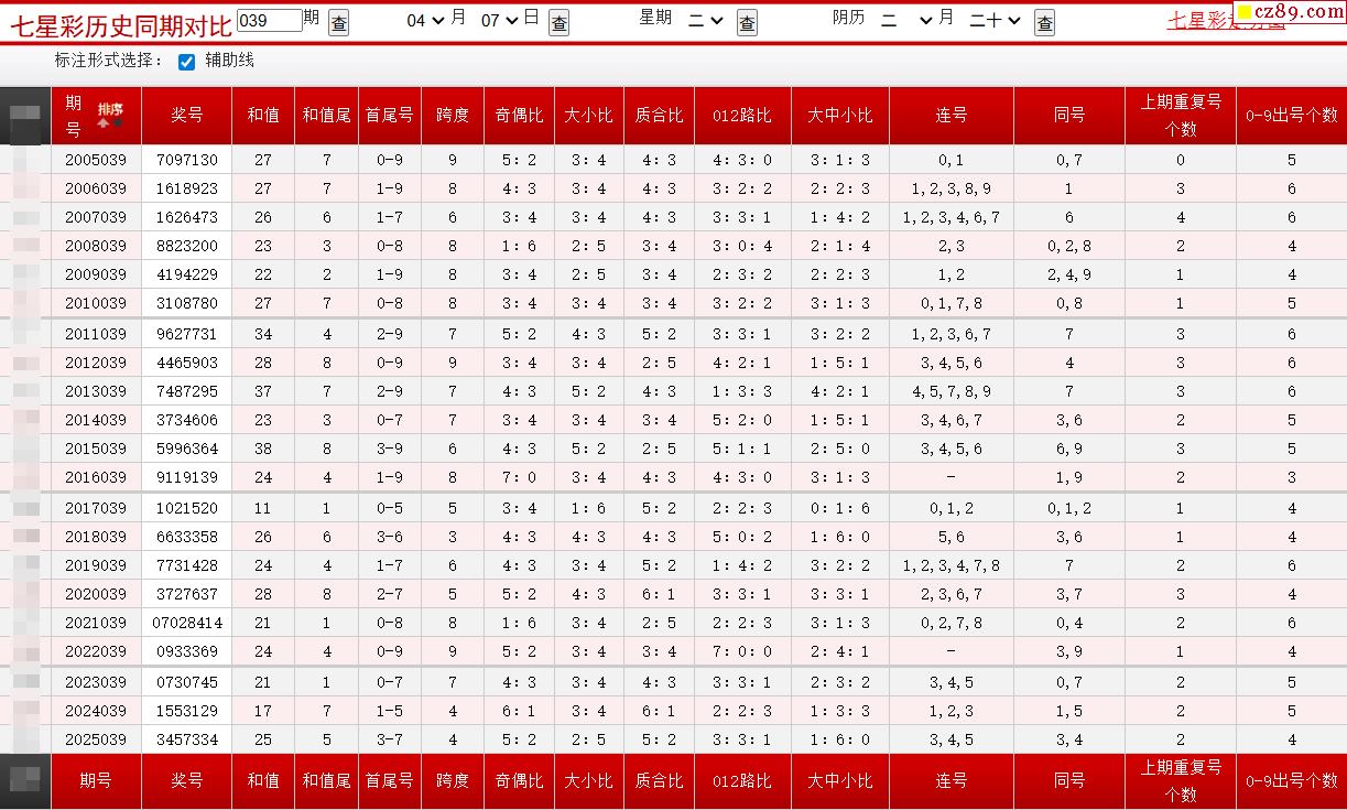 七星彩039期 彩宝贝专家直选杀号预测图表