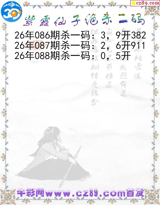 紫霞仙子绝杀二码088期3d图谜