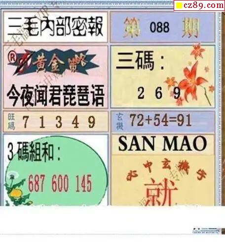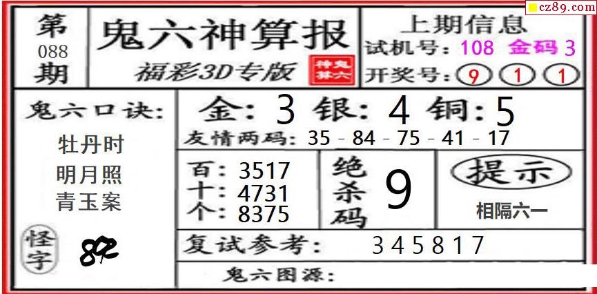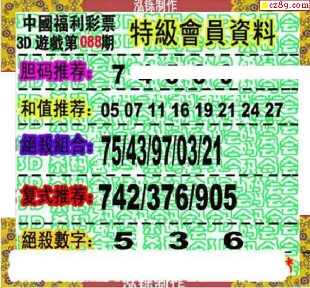 2026088期3D图谜汇总(一)