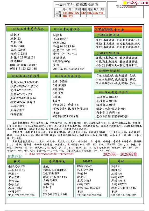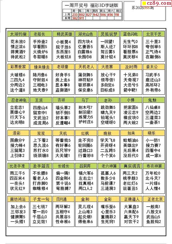 福彩3D2026088期 祁连牧哥百财纳福胆码图谜推荐