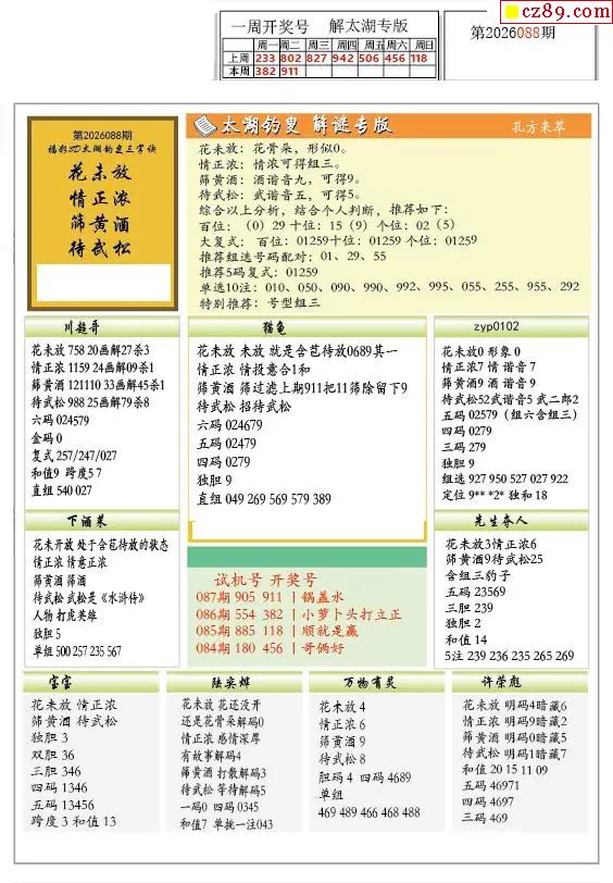 福彩3D2026088期 万家图谜三国胆拖杀图