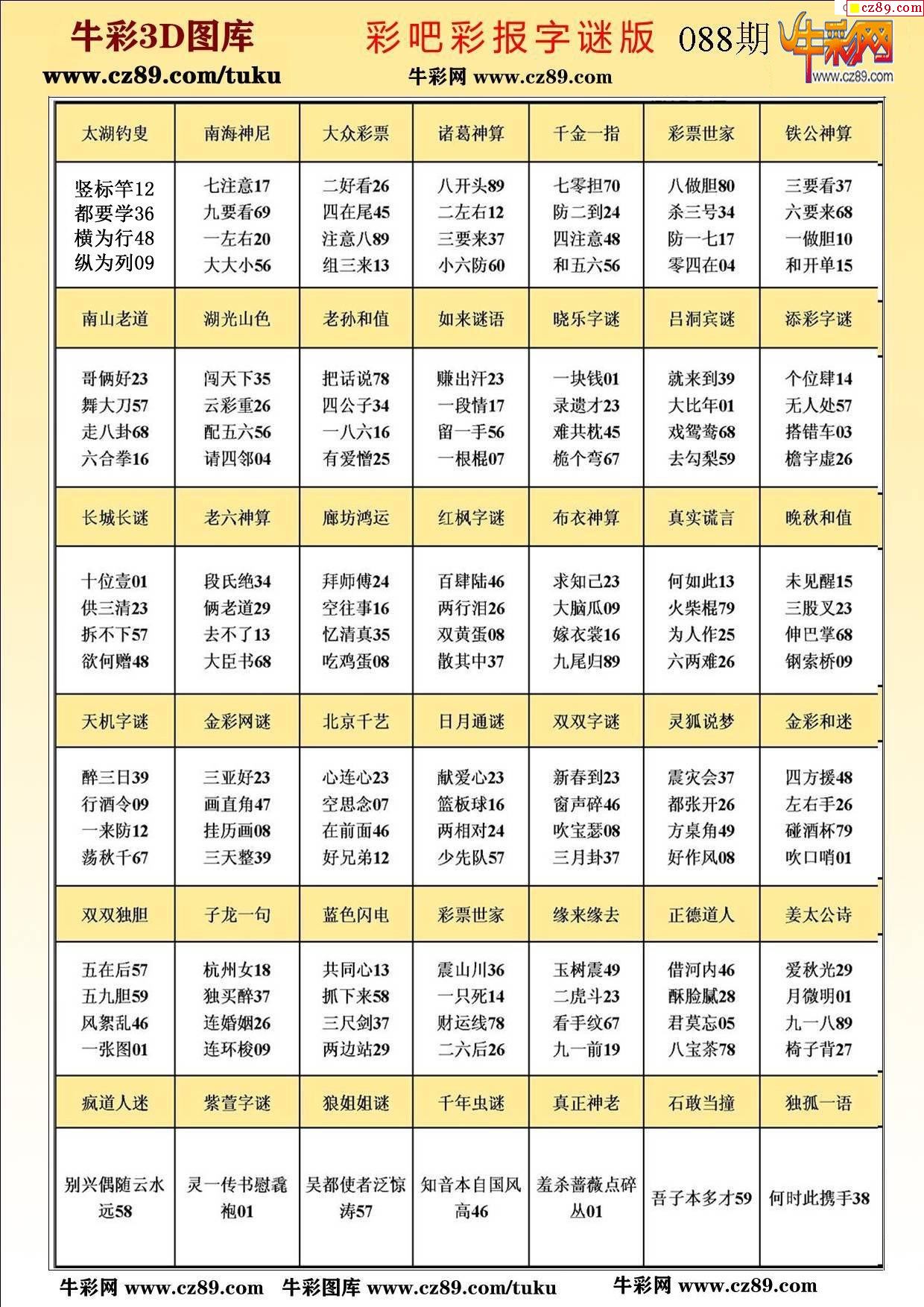 牛彩版3D字谜彩报图26年088期打印版