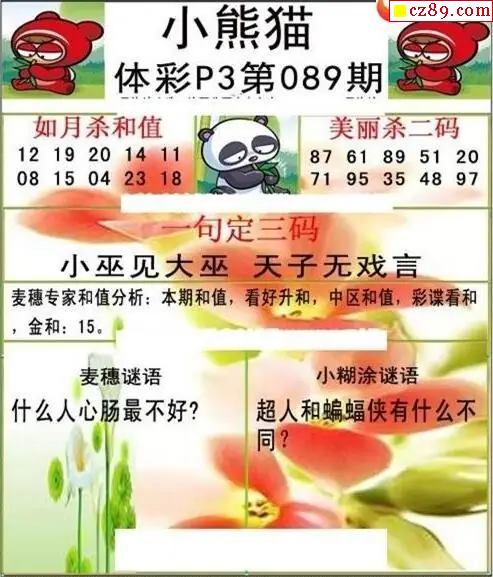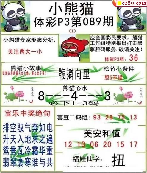 2026年089期牛彩网体彩P3画迷图谜汇总分享