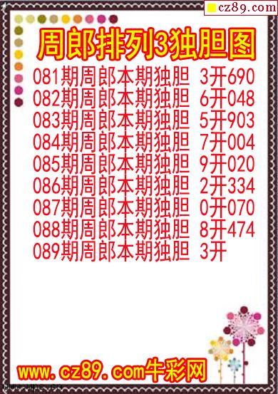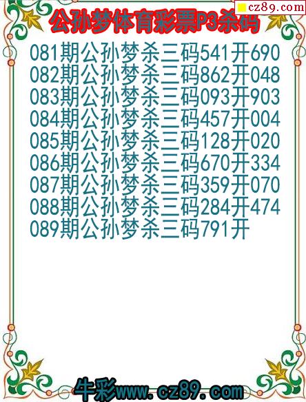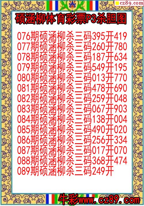 2026年089期牛彩网体彩P3画迷图谜汇总分享