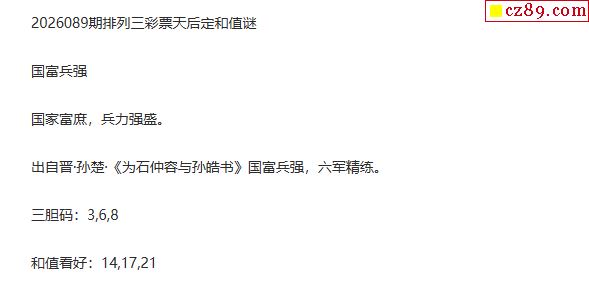 彩票天后p3定和值谜26年089期