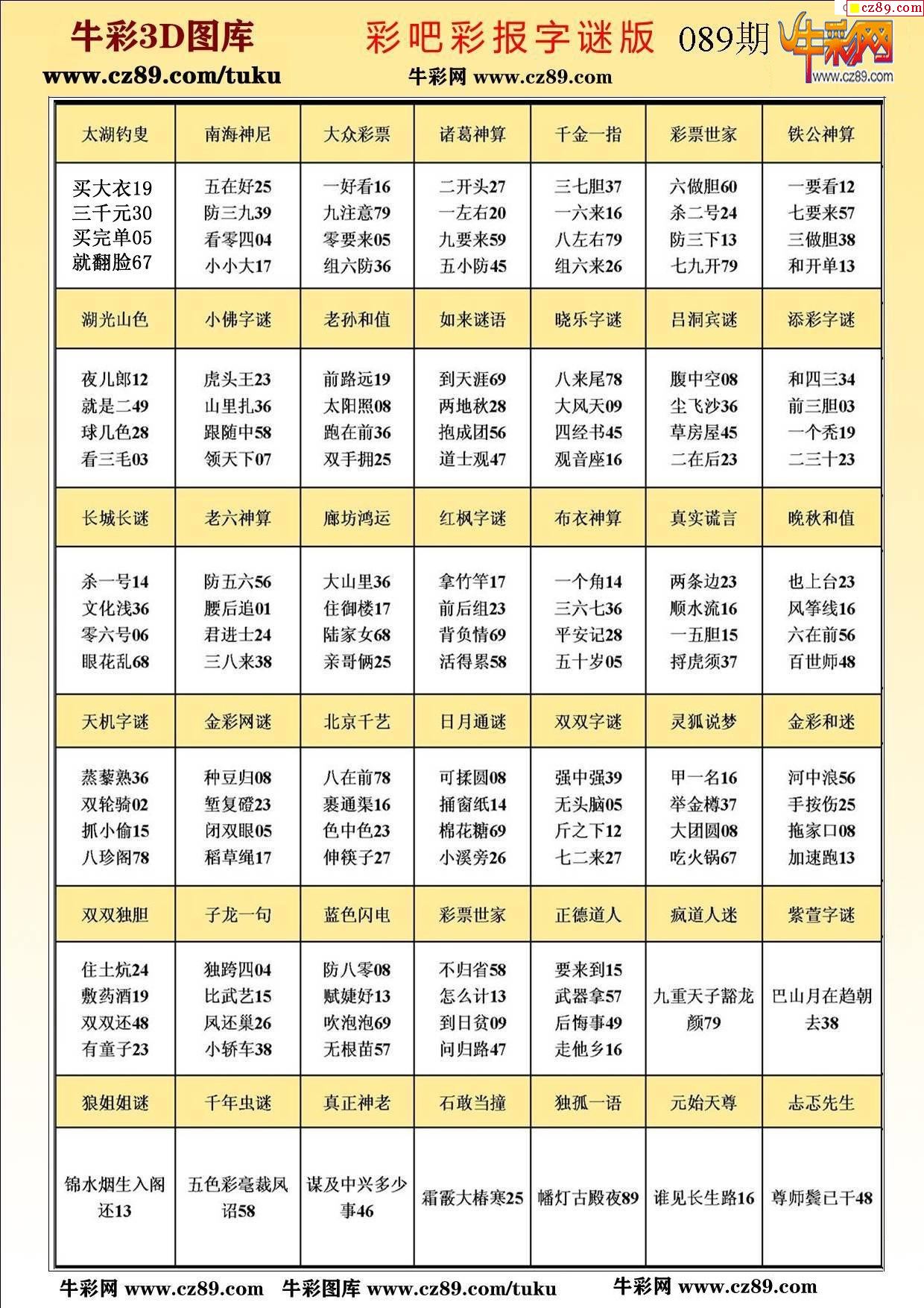 牛彩版3D字谜彩报图26年089期打印版