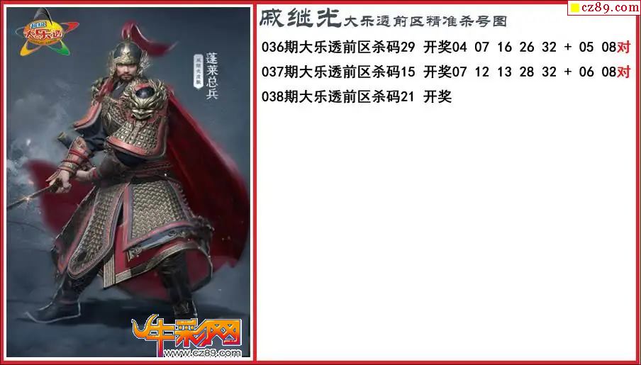 大乐透038期戚继光前区精准杀号图
