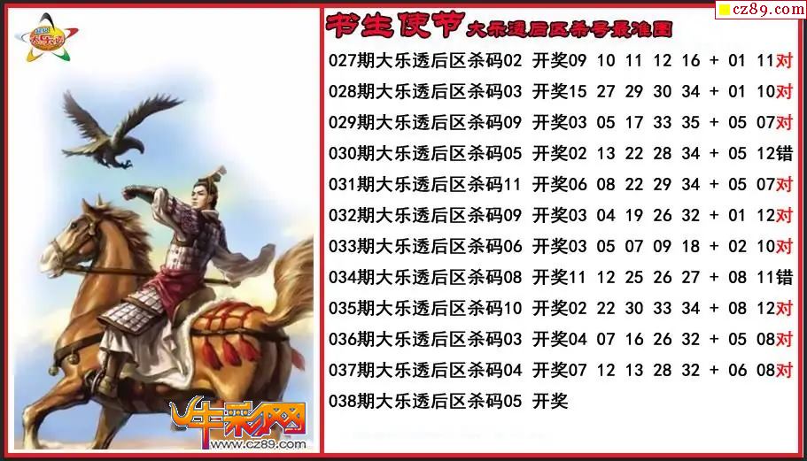 大乐透038期书生使节后区杀号更准图