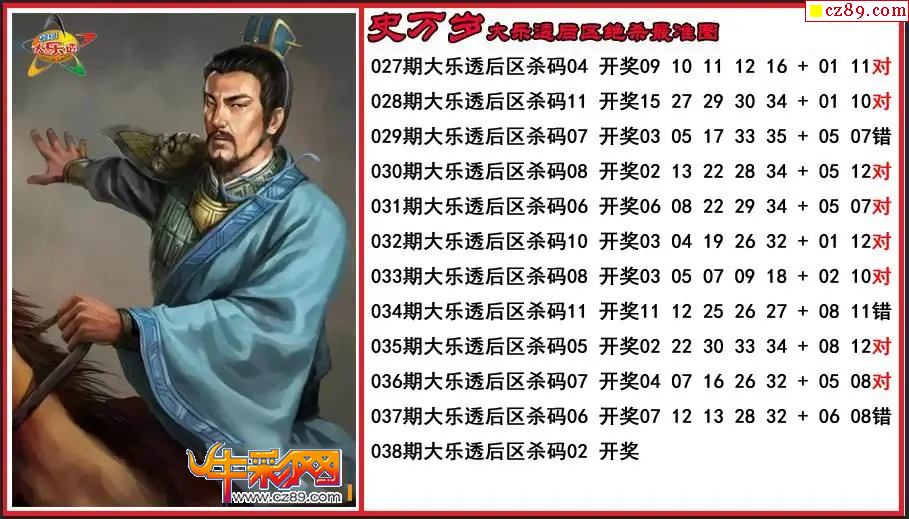 大乐透2026038期关羽后区杀号图谜 10中8
