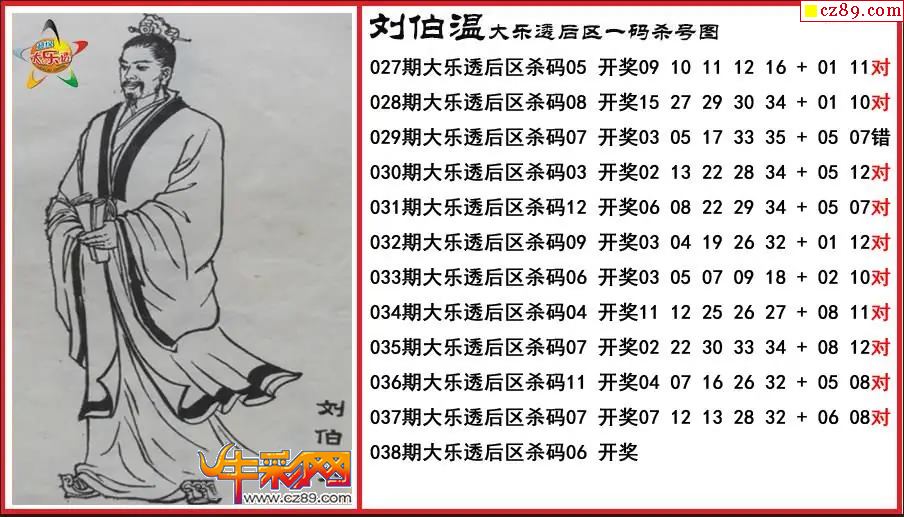大乐透038期刘伯温后区一码杀号图