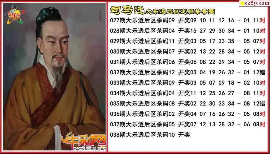 大乐透038期司马迁后区定胆杀号图