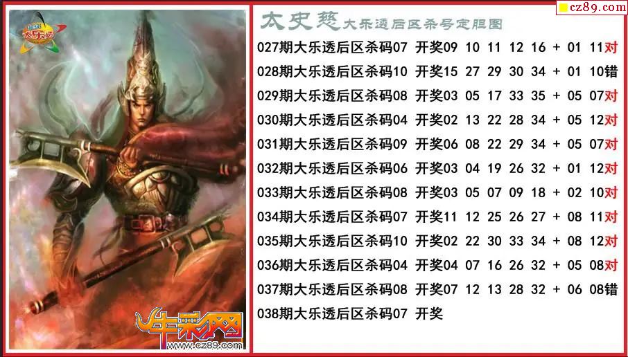 大乐透038期太史慈后区杀号定胆图