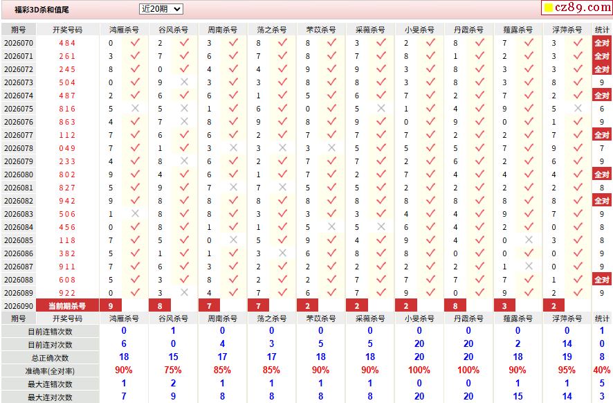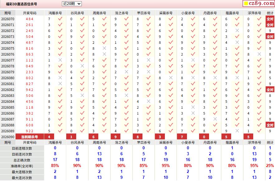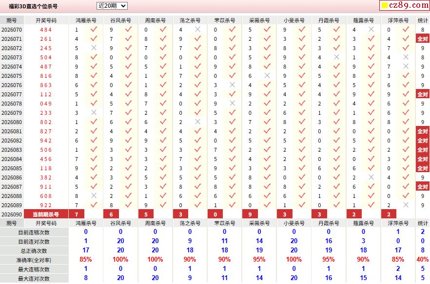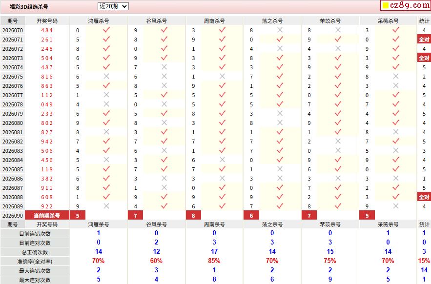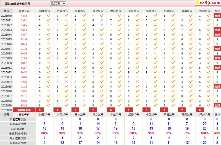 26年090期彩宝贝专家福彩3D杀号定码图表