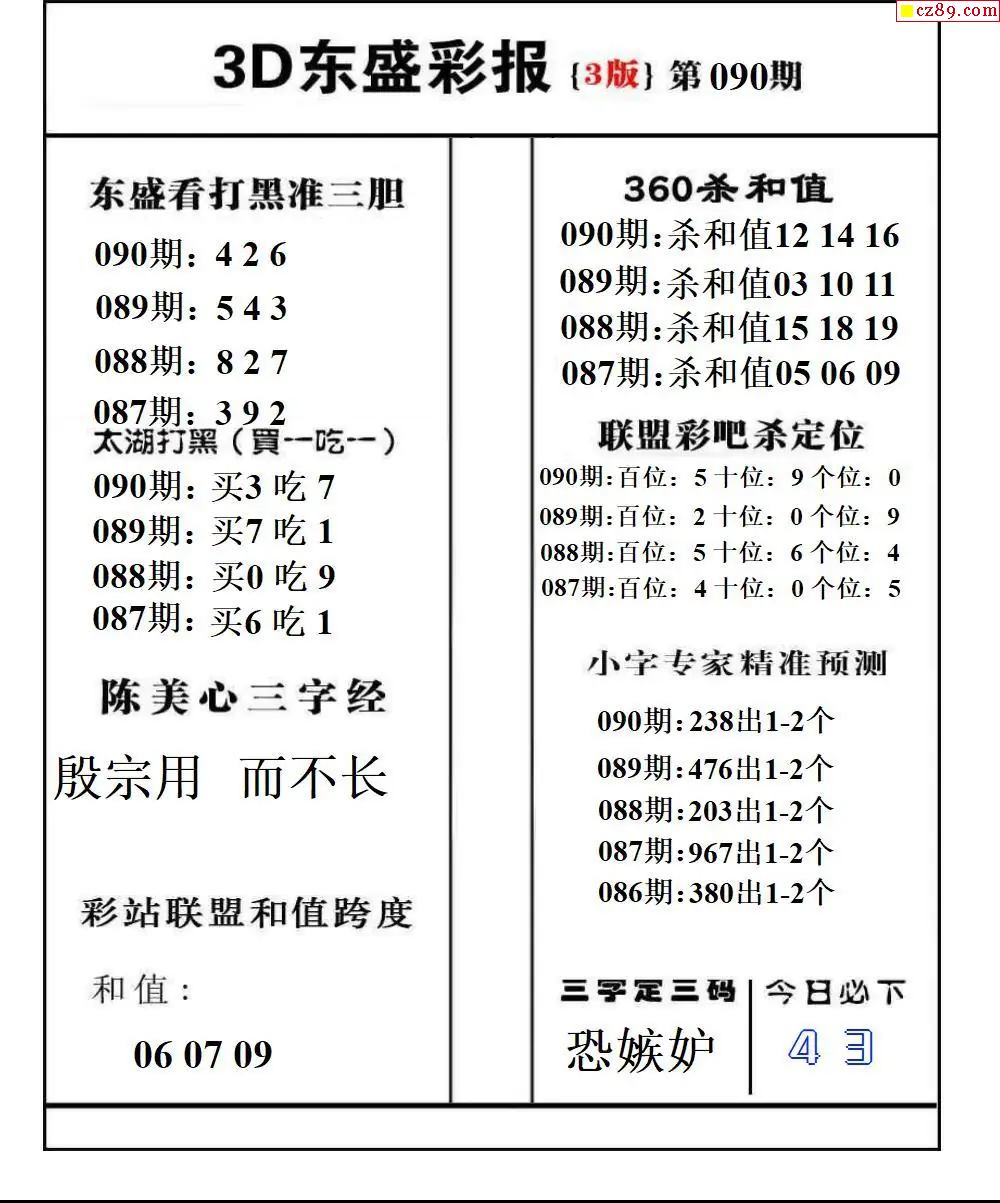 福彩3D2026090期东盛彩报+精品三毛会员版