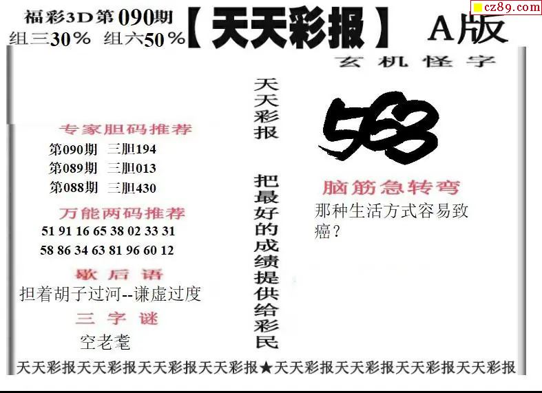 福彩3D2026090期天天彩报A版 天天彩报B版