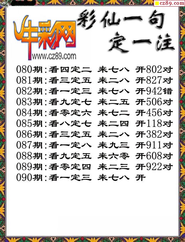 牛彩版3D字谜彩报图26年090期打印版