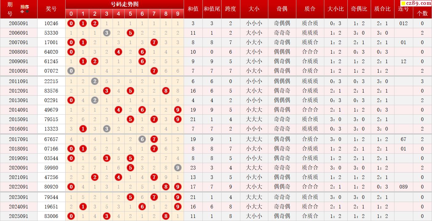 第091期体彩P5历史同期对比