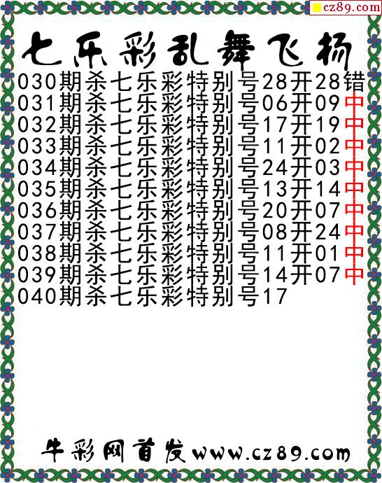 七乐彩2026040期乱舞飞扬今日图谜 10中9