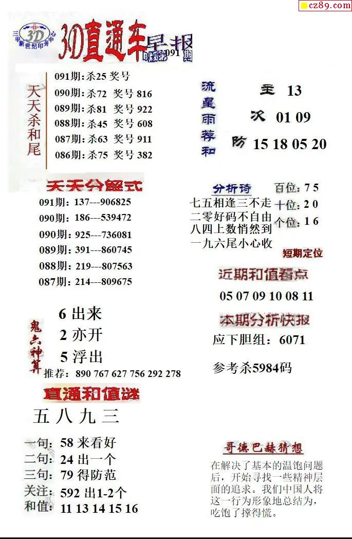 26年091期3d 鸿运当头今晚杀码更准图