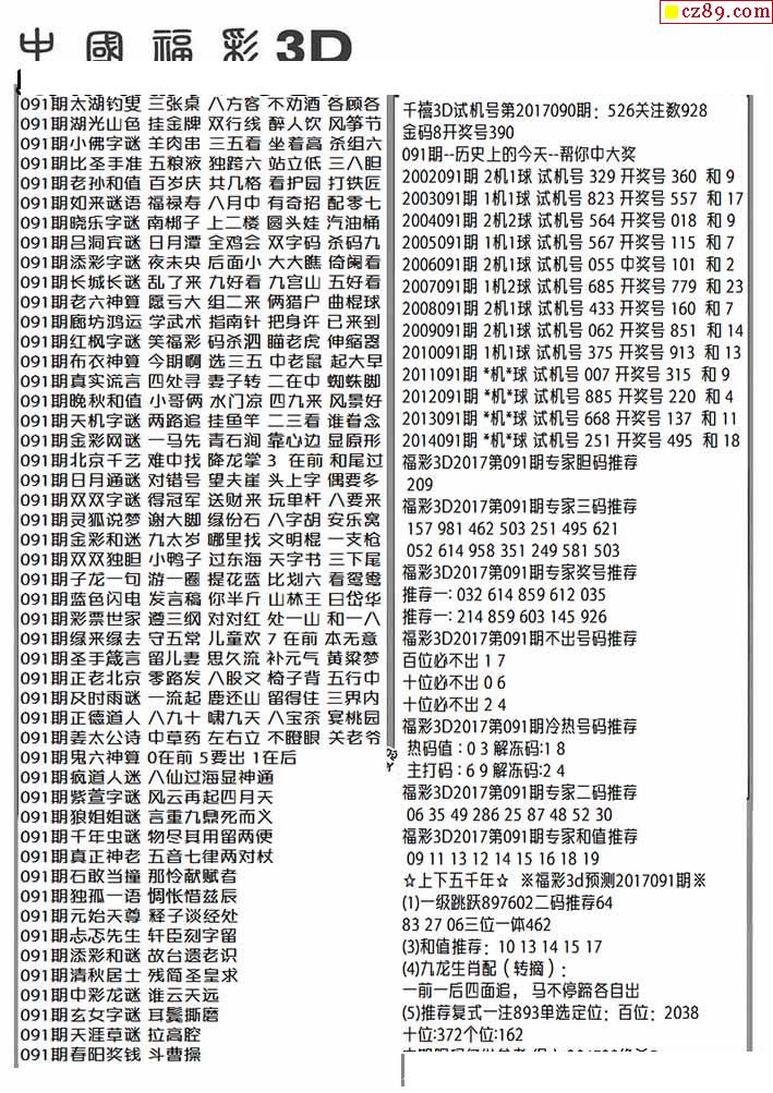 福彩3D2026091期图谜汇总
