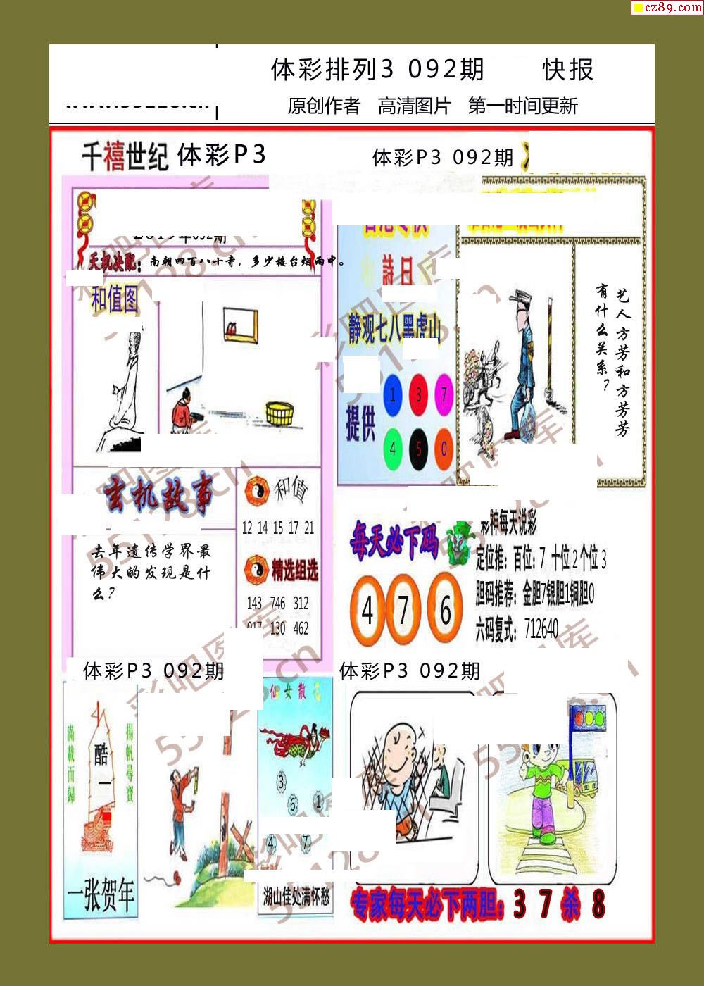 2026年092期牛彩网体彩P3画迷图谜汇总分享