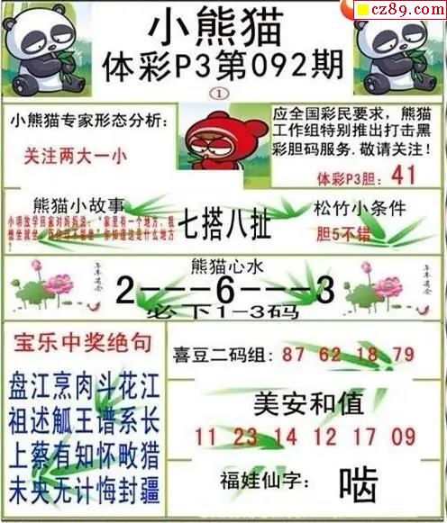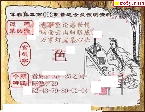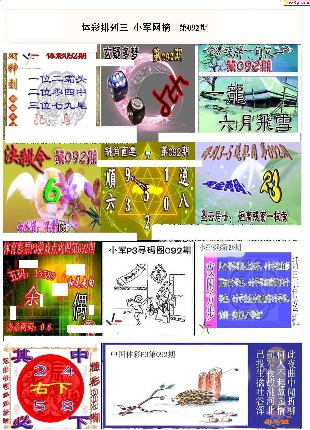 2026年092期牛彩网体彩P3画迷图谜汇总分享