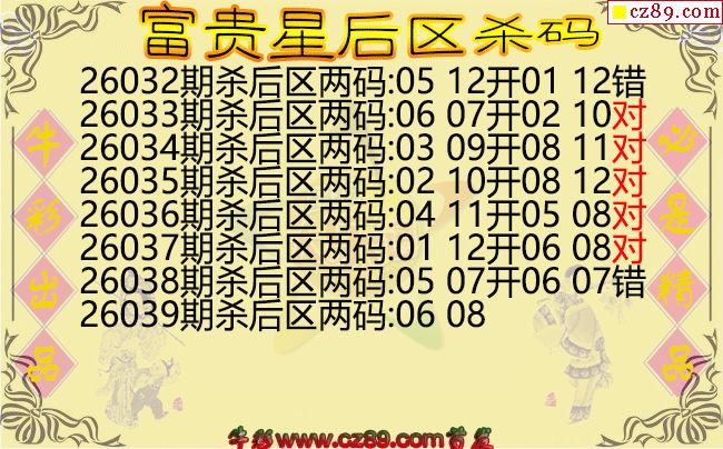 大乐透2026039期富贵星后区杀码图谜