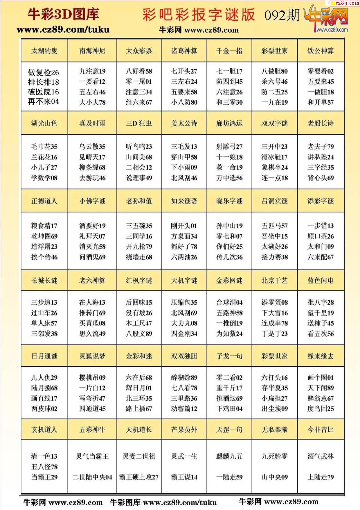牛彩版3D字谜彩报图26年092期打印版