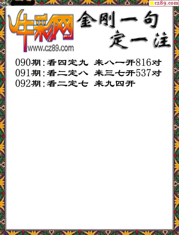 牛彩版3D字谜彩报图26年092期打印版