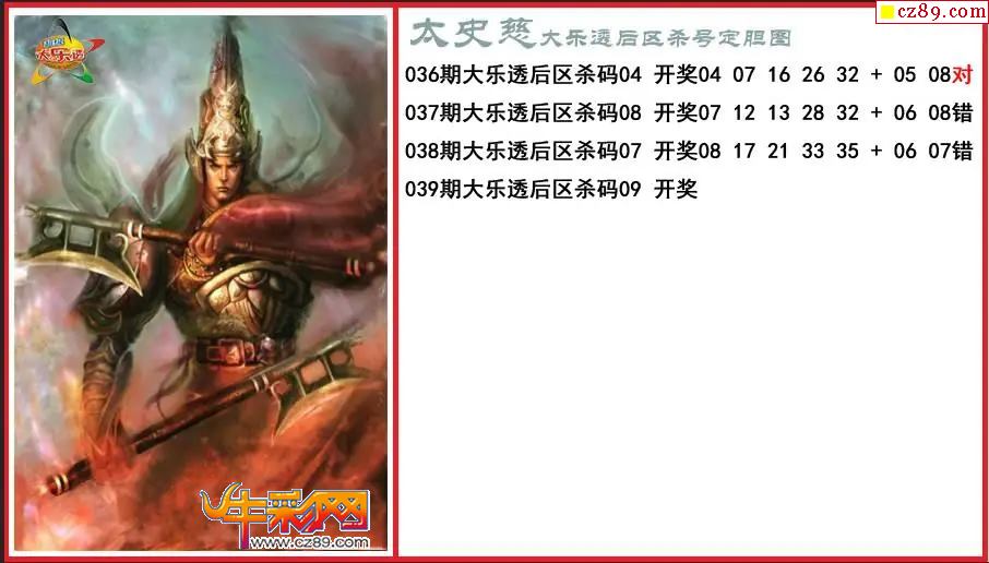 大乐透039期太史慈后区杀号定胆图