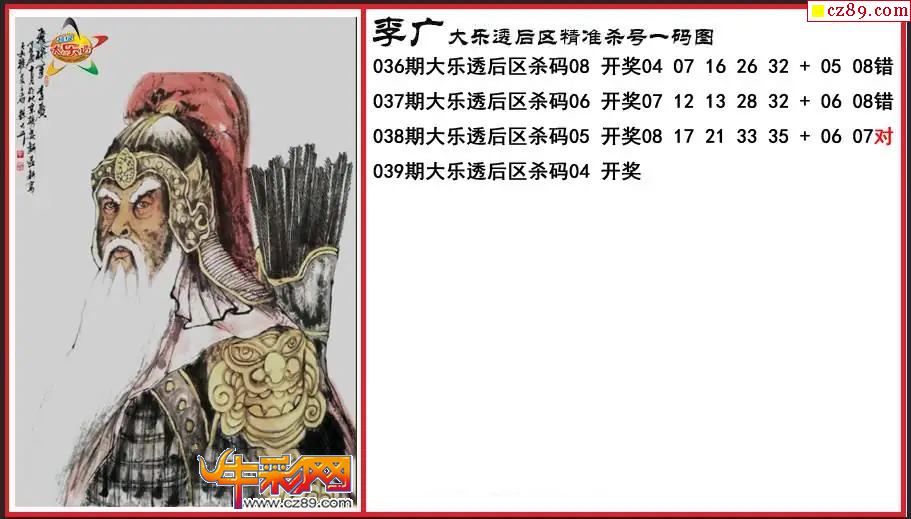 大乐透039期李广后区精准杀号一码图