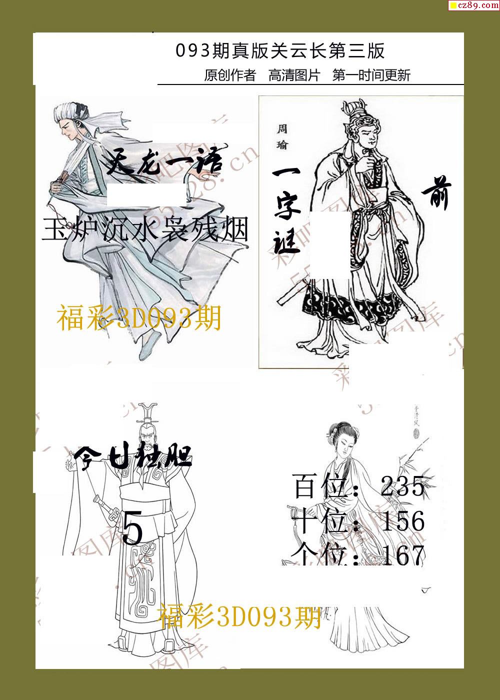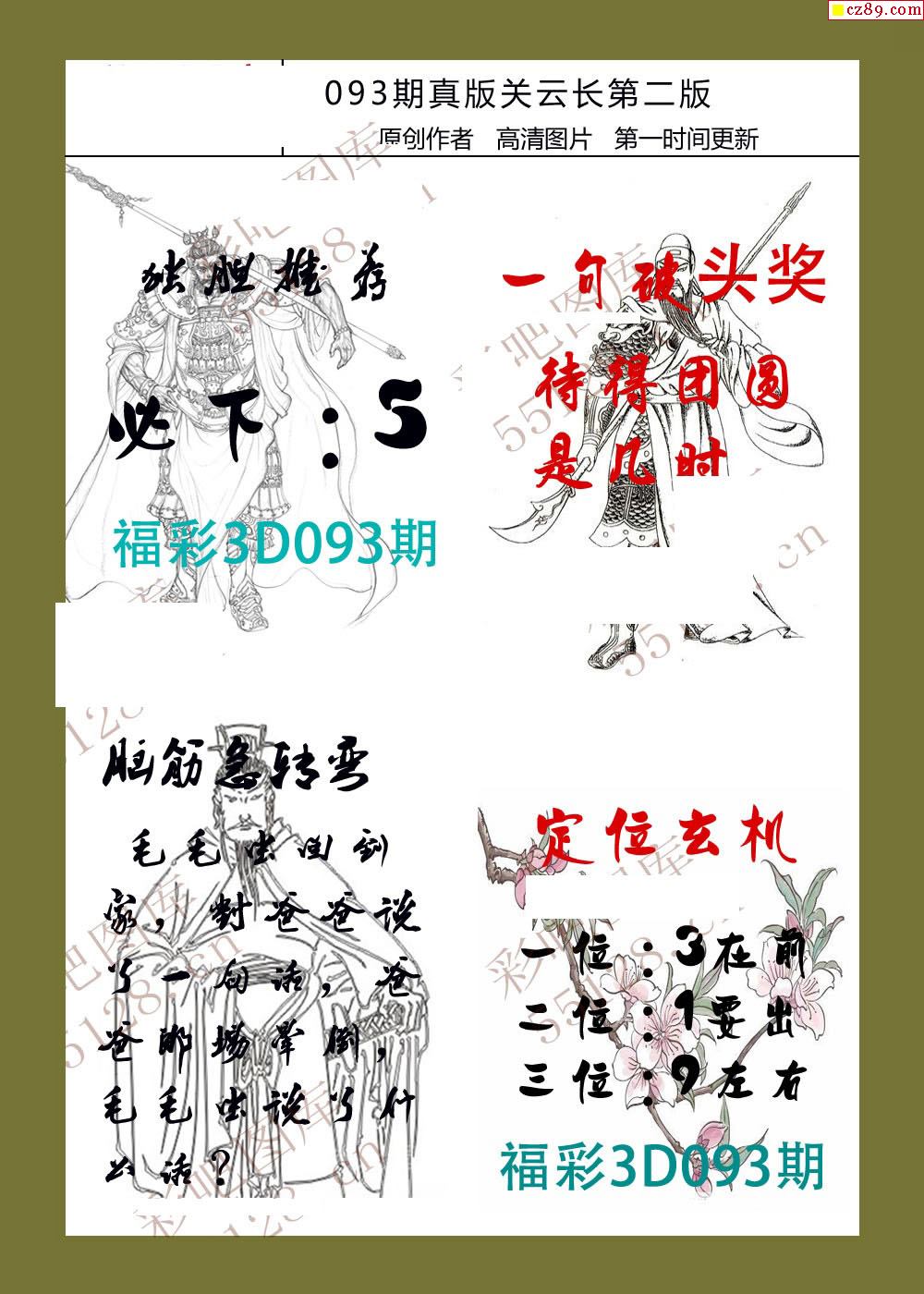 26年093期福彩3d真版关云长图谜