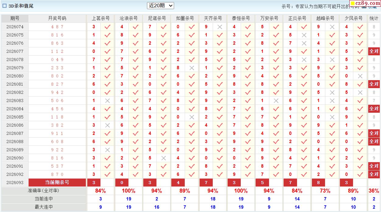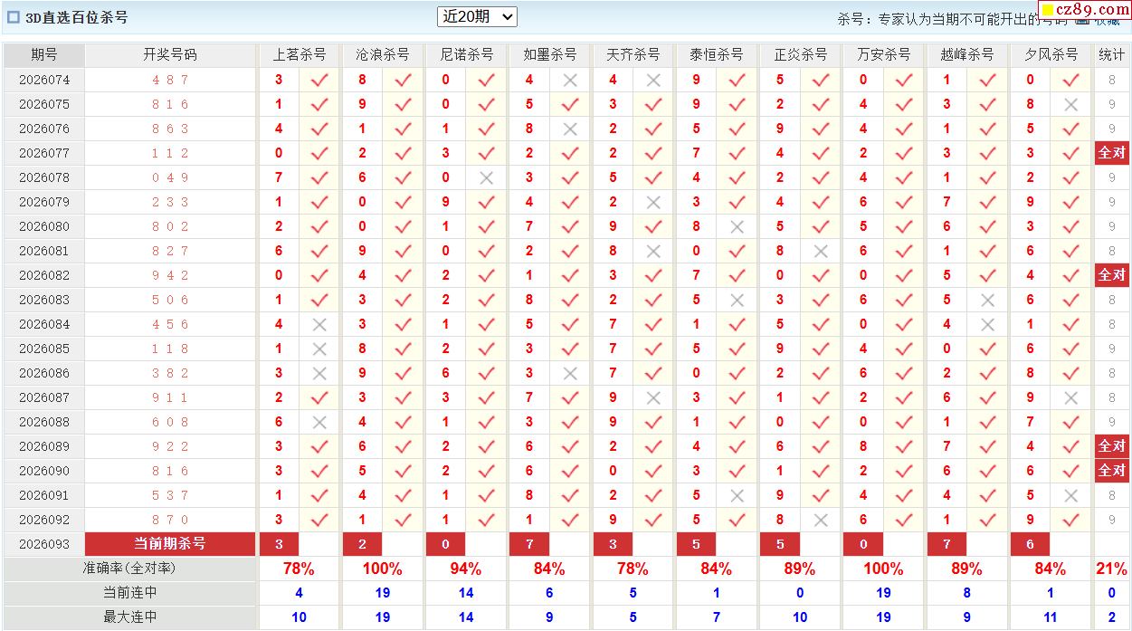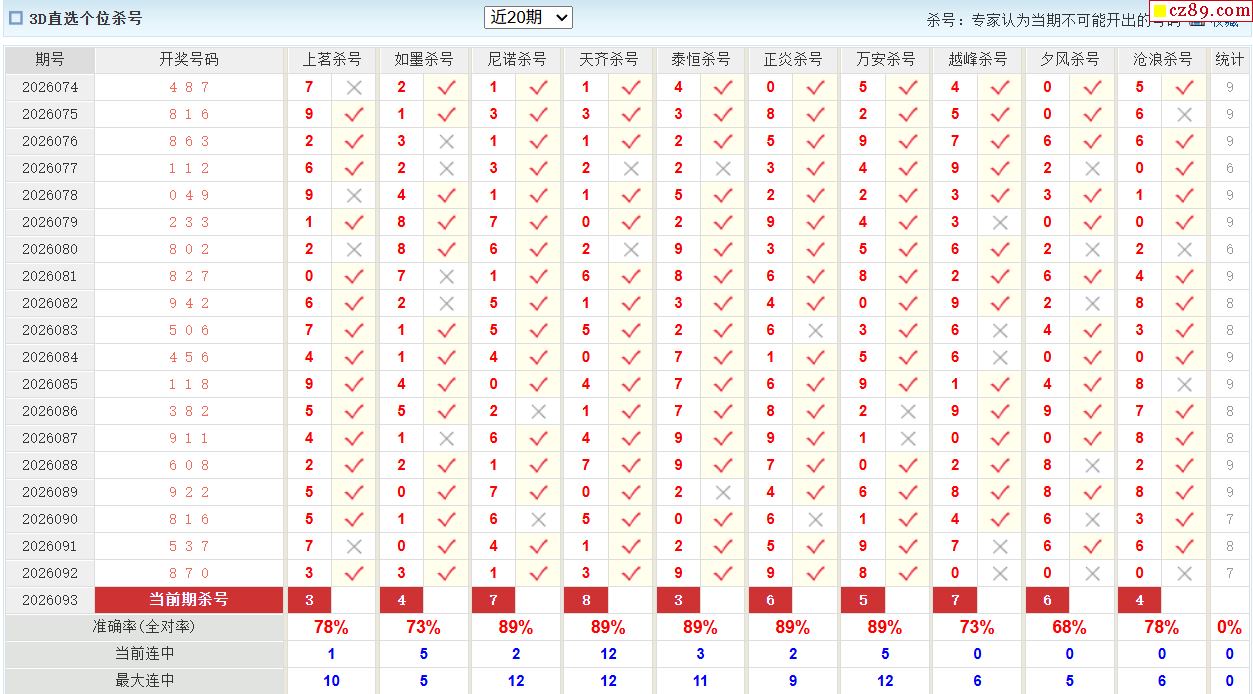 26年093期彩宝贝专家福彩3D杀号定码图表