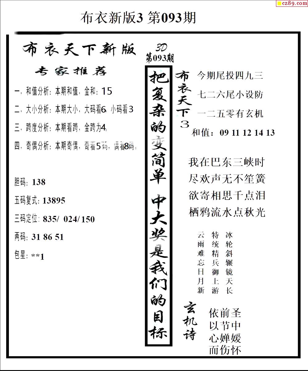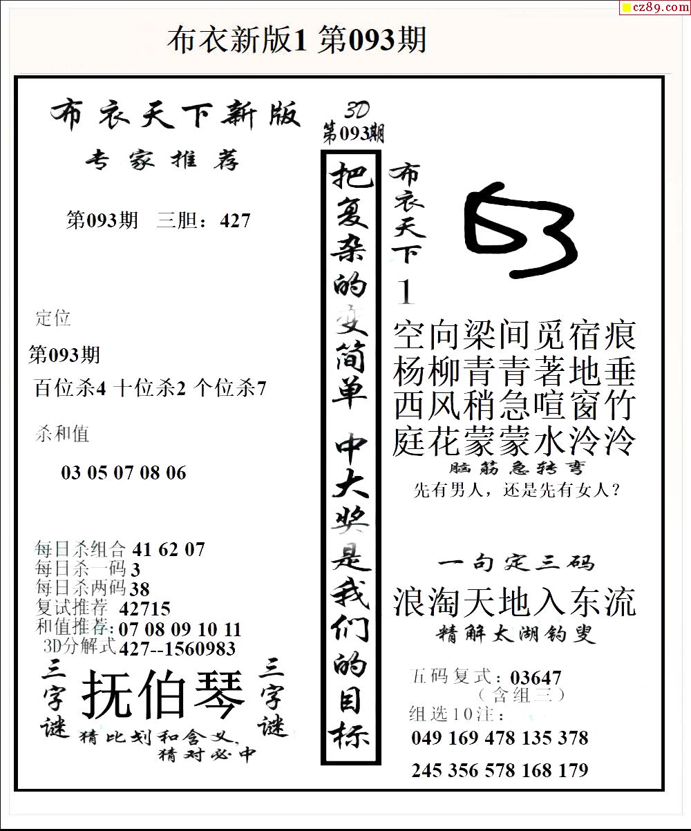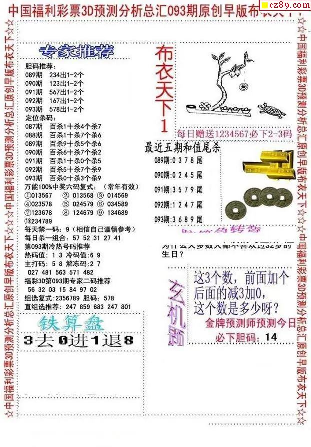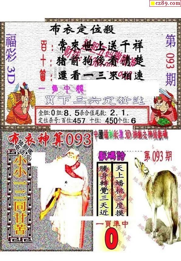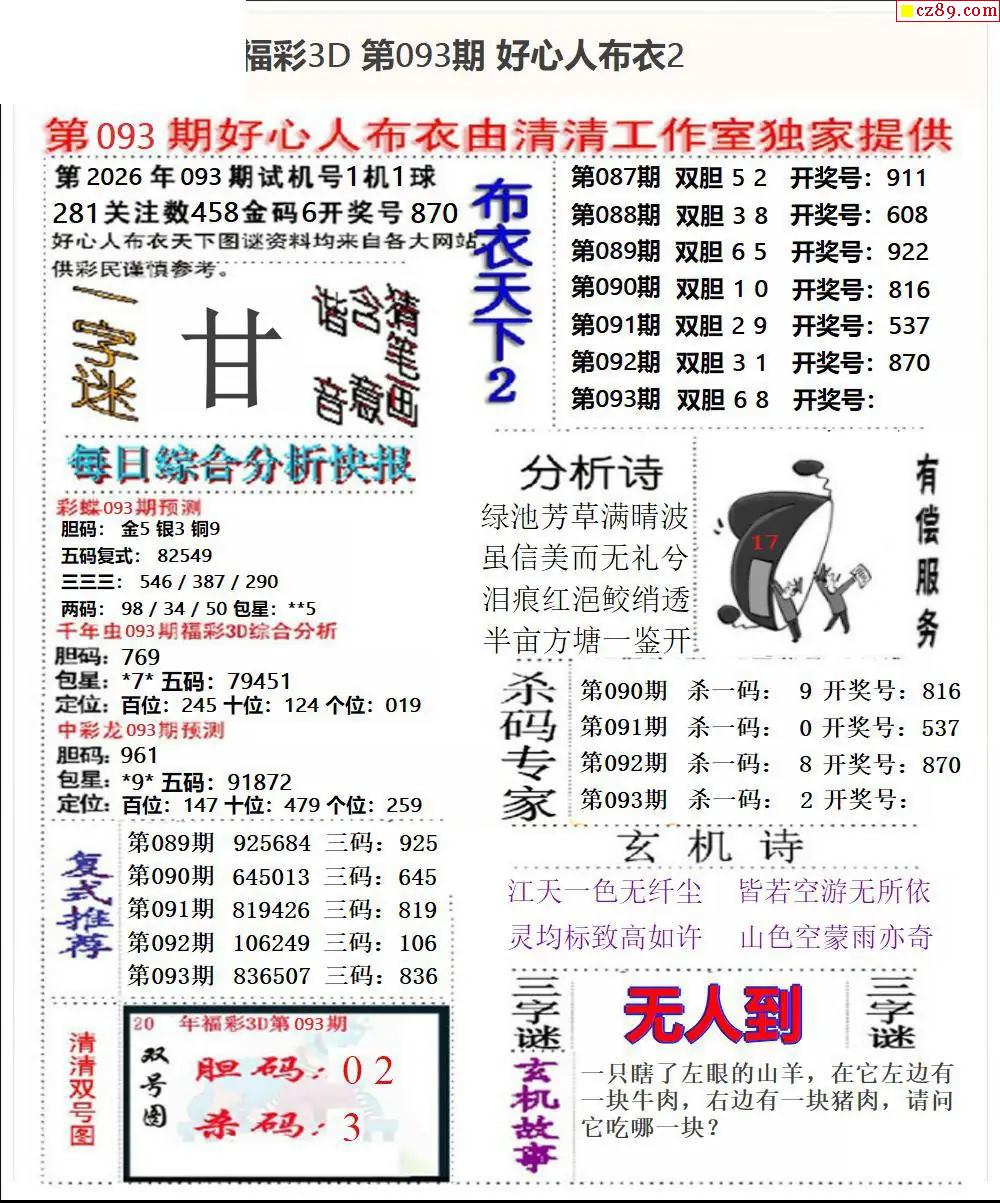 2026093期3D图谜汇总(一)