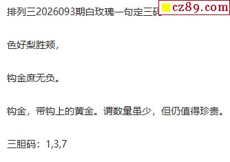 白玫瑰排三一句定三码26年093期