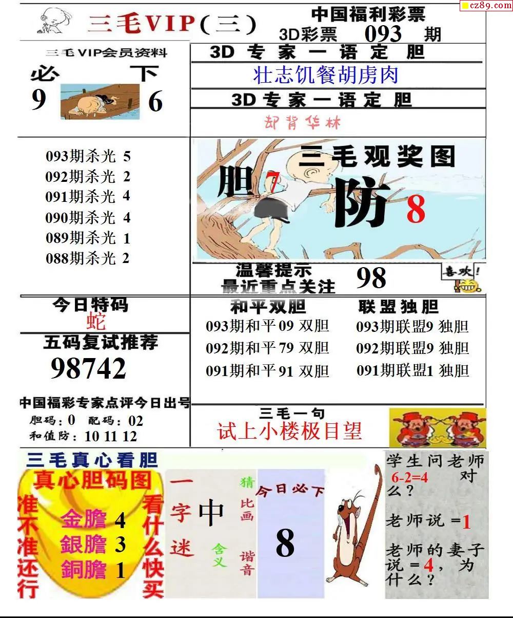 福彩3D2026093期东盛彩报+精品三毛会员版