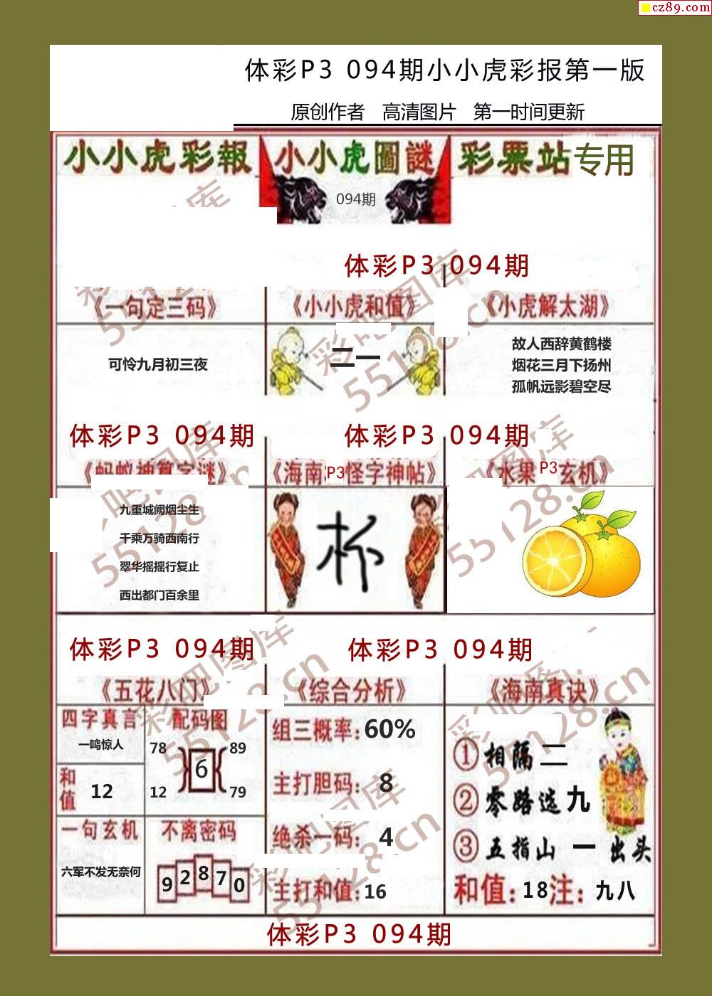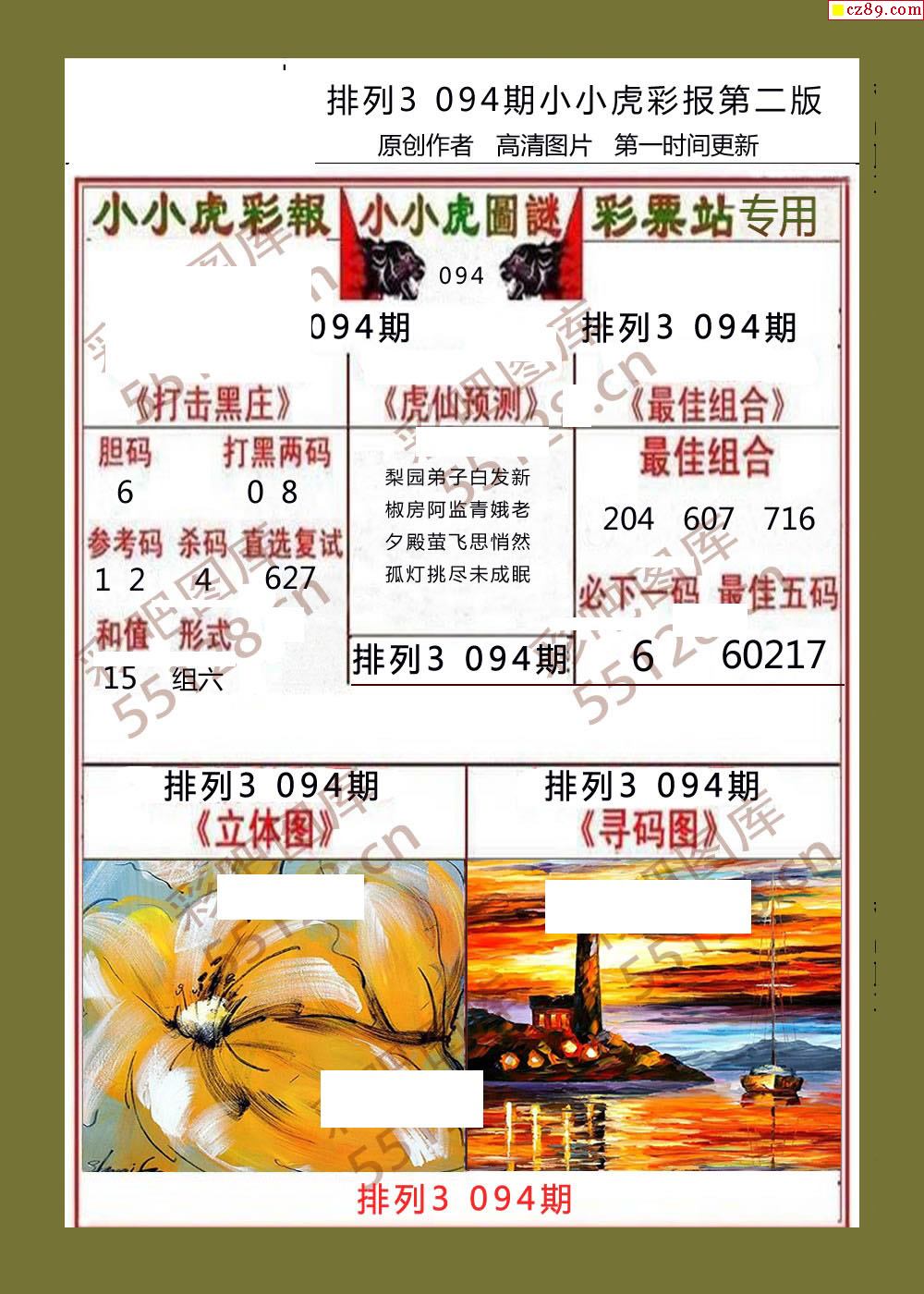 2026年094期牛彩网体彩P3画迷图谜汇总分享