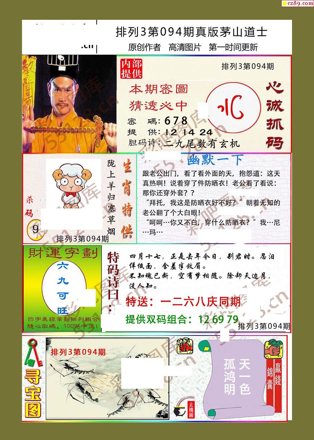 茅山道士094期体彩p3图谜
