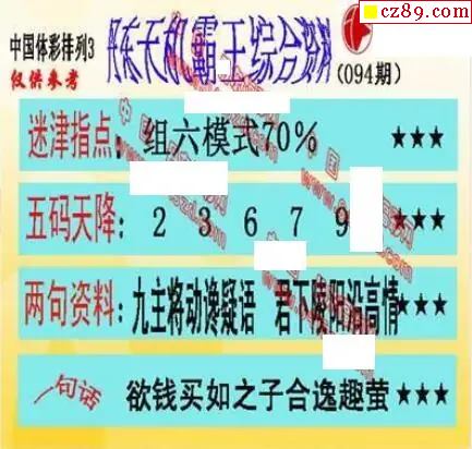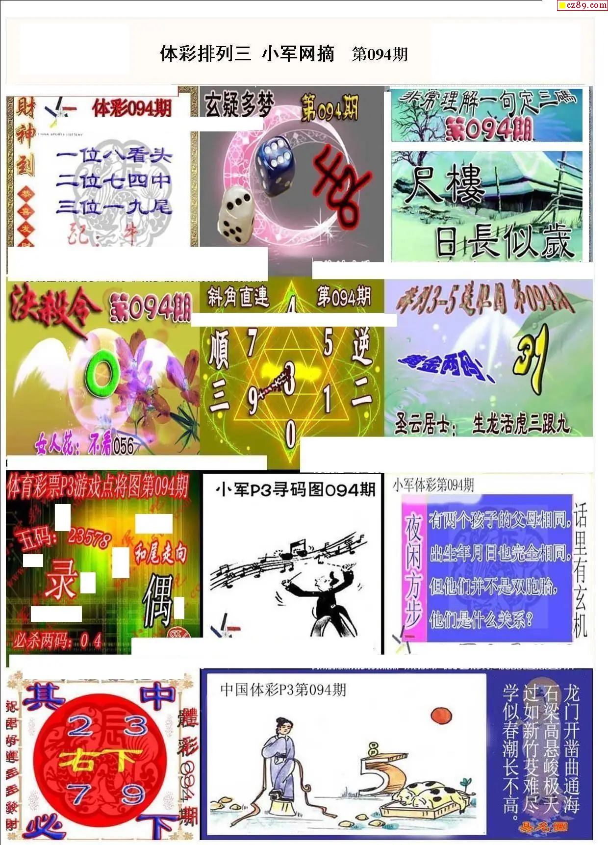 2026年094期牛彩网体彩P3画迷图谜汇总分享