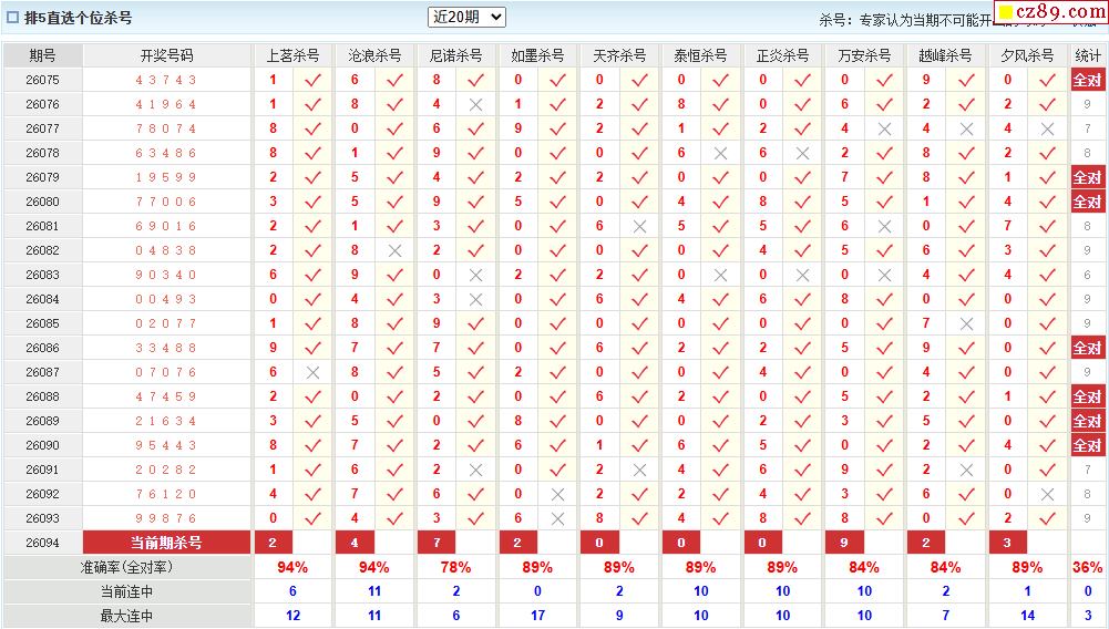 26年094期澳客专家体彩P5杀号定码推荐
