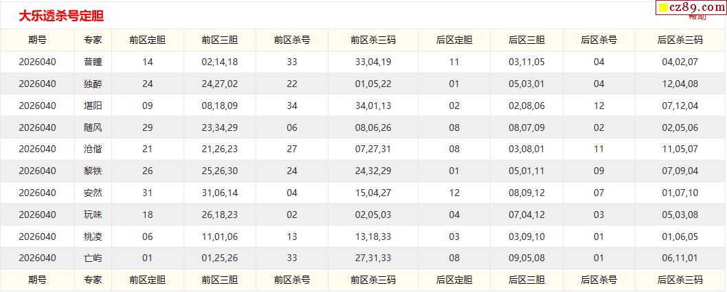 大乐透040期牛彩特邀专家前区后区杀号定胆图表