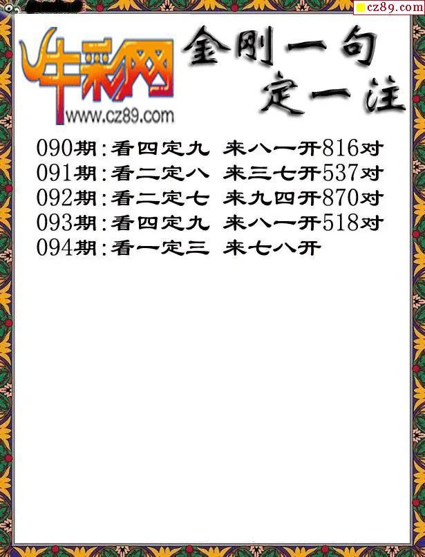 牛彩版3D预测彩报图26年094期打印版