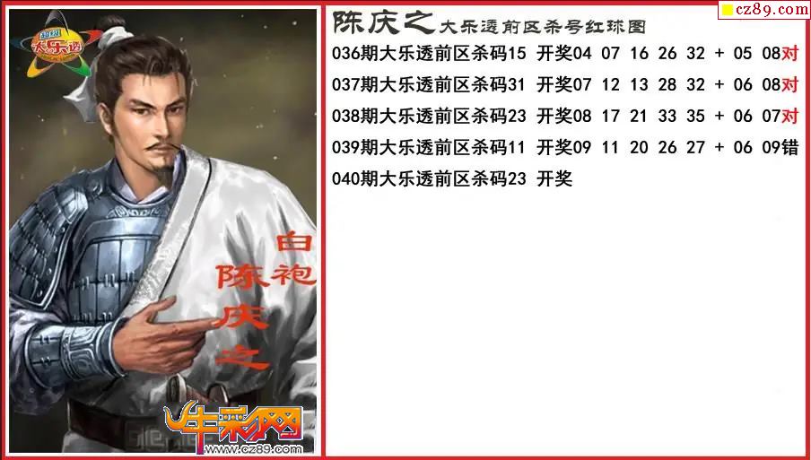大乐透2026040期中国胆王前区四码图谜 10中4