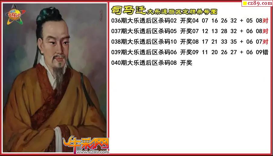 大乐透040期司马迁后区定胆杀号图