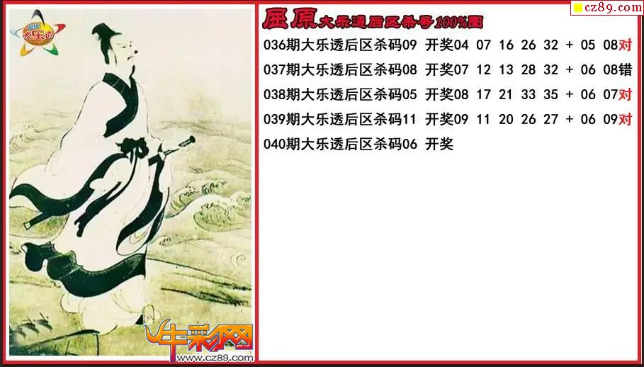 大乐透040期屈原后区杀号图