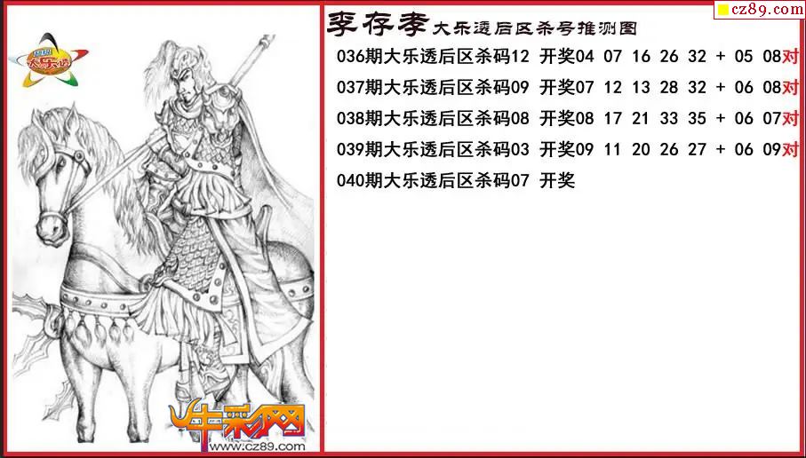 大乐透2026040期中国胆王前区四码图谜 10中4