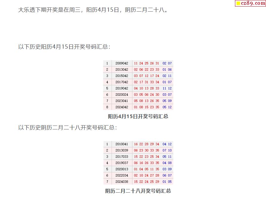 历史上的今天大乐透4月15日开奖号码汇总